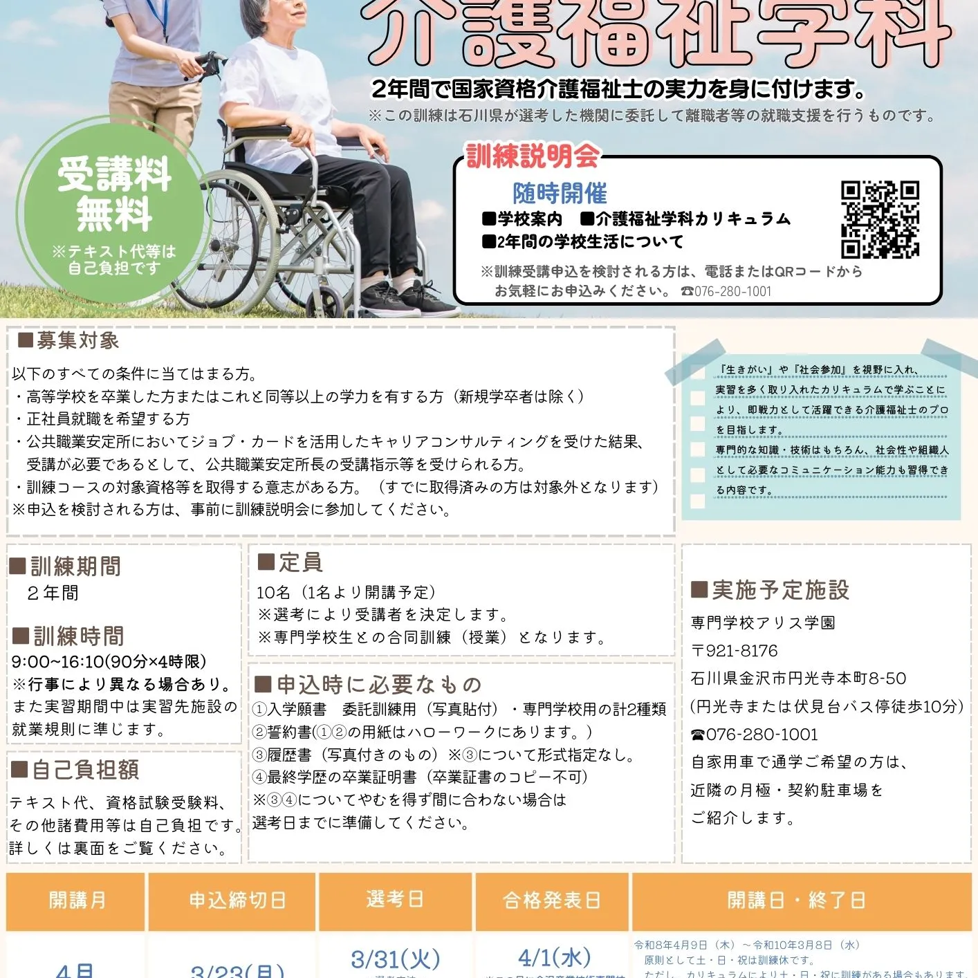 専門学校アリス学園の介護福祉学科。卒業後も長く介護福祉士と活躍していけるよう、日本一の実績を誇る介護福祉士国家試験対策をはじめ、最新の介護技術や知識を取り入れたカリキュラム、そして充実した奨学金制度や設備のもと、安心して介護を学ぶことができます。